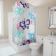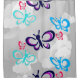 Essa trabalho de arte evoca a sensação de leveza e liberdade com um padrão simplista de borboletas em várias matizes colocadas contra o fundo da nuvem branca e cinza, resultando em uma cortina de chás arejada e lúdica.