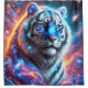 Esta cortina de chá de fantasia tem um design de tigre de arte nela.
