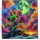 Esta cortina de chá tem uma bela cena de árvore nela.