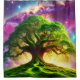 Esta bonito cortina de chá tem uma enorme árvore verde nela fotografada.