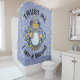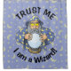 Um velho feiticeiro com capa azul olhando para a bola mágica de cristal.