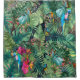 Aves tropicais entre folhas de plantas verdes e folhagem e flores entrelaçadas com fundo solar