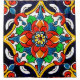 Padrão floral estilizado, com toques de vermelho, verde e laranja, no estilo tradicional de Talavera