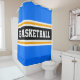 Este esportivo, design atlético, apresenta dentro de texto BASKETBALL ousado, uma faixa preta larga realçada com faixas duplas de corrida brancas e amarelas contra riscas externas azuis brilhantes. O texto neste design pode ser personalizado.