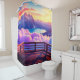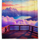 Esta cortina de chá tem uma bela vista da varanda das nuvens e montanhas nela.