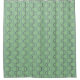 Esta cortina de chá tem um design de deco de arte de meio círculo azul e roxo se conecta a linhas em um campo verde-claro.