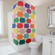 Esta cortina de chá tem um design de Bauhaus de retângulos arredondados amarrados em filas.