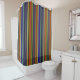 Multi-coloured: Red, orange, blue, green, yellow, beige, and grey stripes