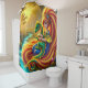 Esta cortina de chá tem um dragão bebê fofo sendo detido por uma princesa.