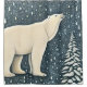 Uma design de arte divertida com um encantador Urso Polar majestoso olhando para o céu noturno ártico, enquanto grandes flocos de neve brancos fluffy caem ao seu redor.
