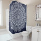 Bonito e intrincado estilo floral mandala design em uma cortina de chá durável. O fundo é azul marinho escuro, mas pode ser personalizado.