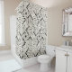 Este padrão de cortina de chá inspirado no asteca tem uma vibração chic Boho com um arranjo geométrico de setas à volta de uma forma brilhante de sol. Esta versão contínua moderna tem um esquema simples de cor preta sobre a cor de fundo de sua escolha (a cor esbranquiçada mostrada aqui é opcional). Procure ID748 para ver outras opções de cores e produtos com este padrão.