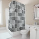 Esta cortina de chá tem um design de quadrados Boho com padrões em preto e branco.