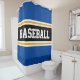 Este esportivo, design atlético, apresenta dentro de texto BASEBALL ousado, uma faixa preta larga realçada com faixas duplas de corrida branca e amarela contra faixas de fundo azul profundas. O texto neste design pode ser personalizado.