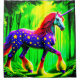 Esta cortina de chá tem um belo unicórnio nela fotografado.