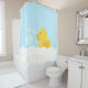 Quack, quack! A cortina de Chá de Borracha Amarela projetada pela Enchantfancy Design Company apresenta um pato amarelo giro flutuando em bolhas de banho. Personalize com sua escolha de nome! Esta cortina de chá faz uma adoração adorável à decoração do banheiro de qualquer criança.