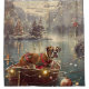 Mergulhe na magia da temporada de férias com esta ilustração lindamente detalhada, mostrando um cachorro orgulhoso sentado em um barco festivamente decorado, deslizando através de um lago de Natal sereno. As luzes cintilantes dos pinheiros próximos refletem sobre a água, lançando um brilho quente e festivo que melhora o conforto ambiente. Os ornamentos pendem do lado do barco, enquanto as lanternas brilhantes iluminam o caminho, criando uma cena que captura a verdadeira essência do calor e alegria natalinos. Esta trabalho de arte nostálgica traz um toque de magia de férias para qualquer espaço, perfeita para aqueles que apreciam o espírito da estação.