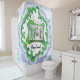 Esta cortina de chuveiro apresenta uma história em quadrinhos original de página única do mundo de Toe's Town.