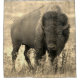 Esta cortina de chá tem um búfalo pintado nela.