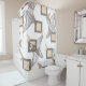 Um meio século moderno design de arte abstrato, com formas de bumerangue e quadrados nos anos 50 em pinks de pó, ressonâncias por sepsia e cinzentos de cinza.