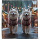 Este design festivo captura o espírito alegre da época natalina, apresentando cães adoráveis. Aninhados num inverno maravilhoso, completo com uma árvore de Natal decorada e presentes lindamente embrulhados. Flocos de neve caem suavemente, adicionando um toque mágico à cena, enquanto as cores vibrantes das decorações natalinas criam uma atmosfera quente e alegre.
