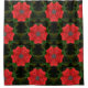 Esta cortina de chá impressionante apresenta uma versão caleidoscópica de florescimento de impacientes vermelhos contra um fundo escuro.