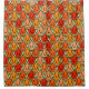 Esta cortina de chá tem um design de tulipas deco de arte de pentágonos e trapezoides em diferentes tons de laranja.