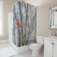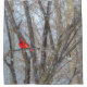 Um Cardeal macho e um Chickadee preto se sentam na minha árvore vermelha durante uma tempestade de neve.