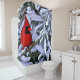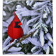Um belo Cardeal Vermelho descansando entre os vergreens de inverno nevados.