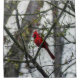 Um cardeal macho sentado na minha árvore Mimosa no início da primavera.