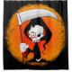 Engraçado e assustador Caráter de Ceifador, com uma capa longa, escura e preta de capuz, carregando uma cicatriz que ele usa para colher almas. Ilustração Vecto Original Copyright BluedarkArt.
