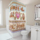 Esta cortina alegre de chá, com tema de férias, em matizes de terra pálida apresenta duas casas de pão-de-gengibre com um homem de gengibre, um gato, várias árvores de Natal, um barco e um casal de trens a vapor e aviões. Personalize o texto dentro do coração do pão de gengibre de qualquer maneira que você quiser transformá-lo em um presente de Natal verdadeiramente adorável e único para alguém especial!