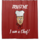 Cabeça de chef com chapéu, corcunda vermelha e texto personalizado.