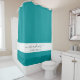 Cortina de chá verde-tropical chic com o texto Sr. e Sra. num guião elegante fora de preto. A cor verde viridian é usada para este design na moda que você pode personalizar com seu nome casado. Presente de luxo perfeito para o novo casal. Desenvolvido exclusivamente para você pelo Happy Dolphin Studio.
