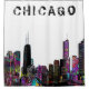 O estilo de rua trabalho de arte está em tendências na moda doméstica. Esta divertida obra de arte apresenta a cidade de Chicago, Illinois coberta de grafite. Escolha uma cor de fundo diferente para complementar a decoração do banheiro.