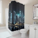 Uma nítida ilustração de um horizonte da cidade à noite com um reflexo na água.