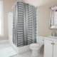 Cortina Para Box Cinza e geometria branca