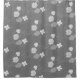 O bonito design monocromático apresenta cinzas e flores brancas com espirais e folhas traçadas em cinzas prateadas sobre fundo de cinza escura.