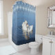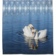 Fotografia bonita de duas cisnes brancas no amor em um lago azul de cristal com uma beira moderna do teste padrão do diamante. Fotografado e projetado por Suzanne Parada.