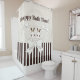 O design do produto apresenta gêmeos coelhos e fitas esbranquiçadas. Este adorável desenho animado com listras faz uma cortina de chá bonita, clássica, moderna e única, com texto personalizado para crianças