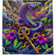 Esta cortina de chá de fantasia tem um design colorido.