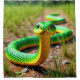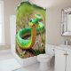 Esta cortina de chá tem um cobra verde nela.