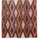Um padrão artístico retrô dos anos 50 com diamantes ocos geométricos e estrelas do estilo da era atômica. As cores múltiplas incluem laranja queimado, número queimado, marrom, marrom, mogno, ocre e rosa.