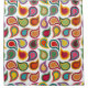Esta cortina de chá tem um design moderno do século médio de paisleys dispostos uns sobre os outros em cores retrorreflectoras.