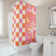 Checks and Swirls é para quem ama retrô, design de tendências e uma estética rosa e laranja. Esta design poderia fazer o presente perfeito para um Filho, filha, ou só para si se você ama a design retrô moderna. As cortinas de chá exibem este poço de design e fazem um excelente adicional em qualquer banheiro.