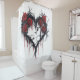 Coração de Cornos e Cortina de Chá Rosa. © Desejos do Coração Escuro. Esta cortina de chá gótica tem um grande coração de espinhos com rosas vermelhos sangrando sobre um fundo branco.