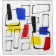 Um design de abstrato de arte inspirado nos padrões modernos do meio século de início do século 20, com quadrados geométricos deformados em cores primárias vermelho, azul e amarelo.