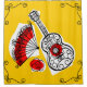 Design de chicória desenhada em forma retrorística, com lembranças de férias espanholas; uma guitarra de ferro em formas brutas, um fã de legado e uma rosa vermelha. Um design personalizável em preto, branco, vermelho e ouro amarelo para você personalizar com seu próprio texto, imagens e ideias. Uma imagem de arte digital original.