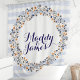 Eleve a decoração do seu banheiro com esta charmosa cortina de chuveiro personalizada. O design apresenta uma delicada coroa floral em tons suaves de laranja e branco, emoldurada por listras azuis marinho. Personalize com os nomes do casal em escrita elegante para um toque único e sofisticado. Feita de tecido de alta qualidade e resistente à água, esta cortina de chuveiro é elegante e funcional.