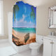 Sai do paraíso com esta cortina de chá de cor vibrante. Esta cortina mostra uma imagem de uma praia tropical com areia marrom esplêndida, palmeiras legal, ondas de oceano azul relaxantes, e uma canoa lindamente pintada sentada na costa.